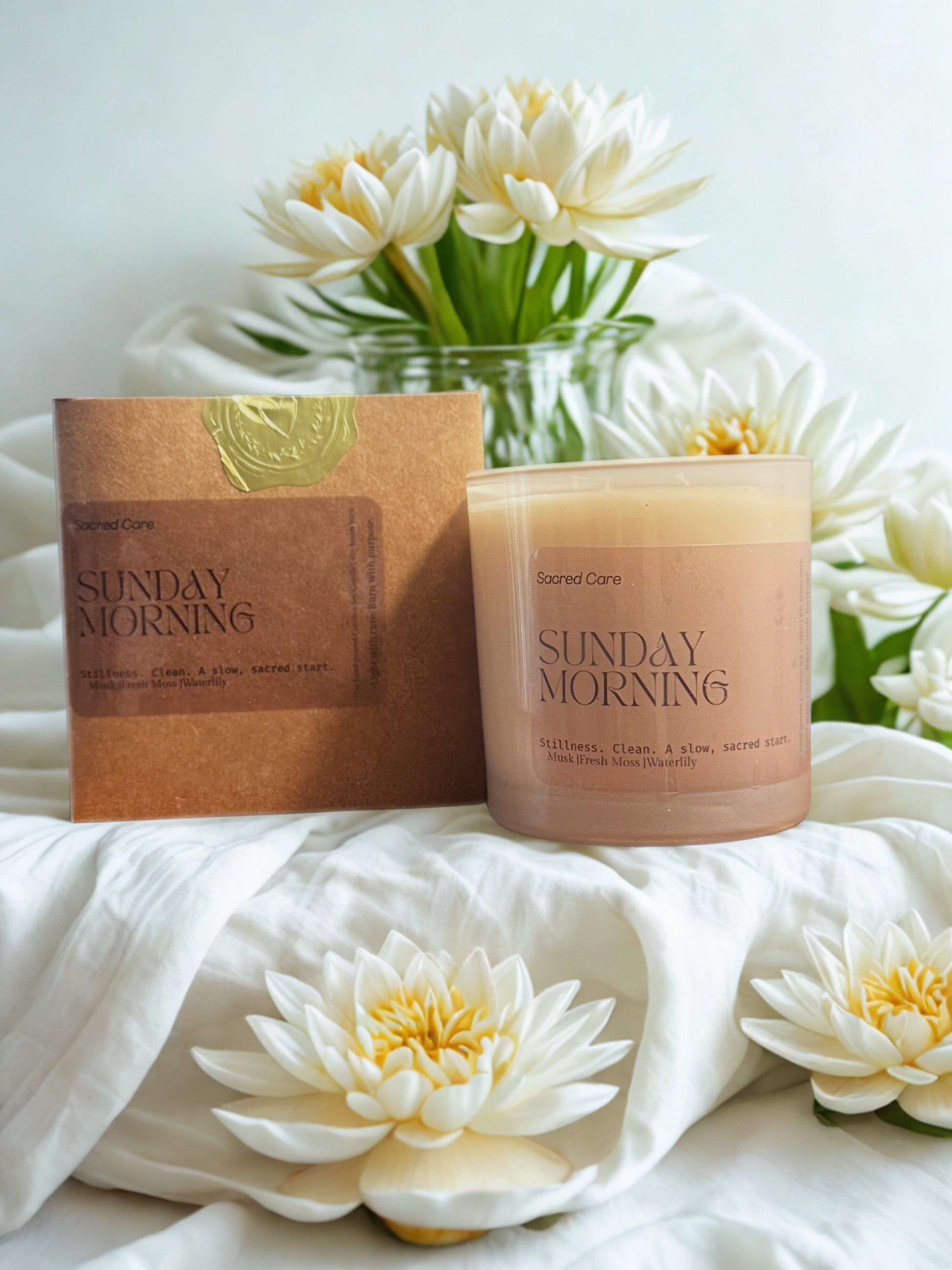 Sunday Morning candle captures the essence of peaceful weekend stillness with a sophisticated blend of musk, fresh moss, and waterlily. This 7 oz coconut soy wax candle offers 40-50 hours of clean burning through a double cotton wick. Perfect for creating a serene atmosphere in small to medium spaces. Hand-poured in Anaheim with premium fragrance oils in a reusable glass jar.
